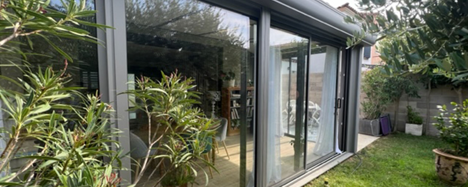 L’intégration des volets roulants orientables ont également permis à notre cliente de contrôler la lumière et la température de son séjour, tout en sécurisant sa véranda.